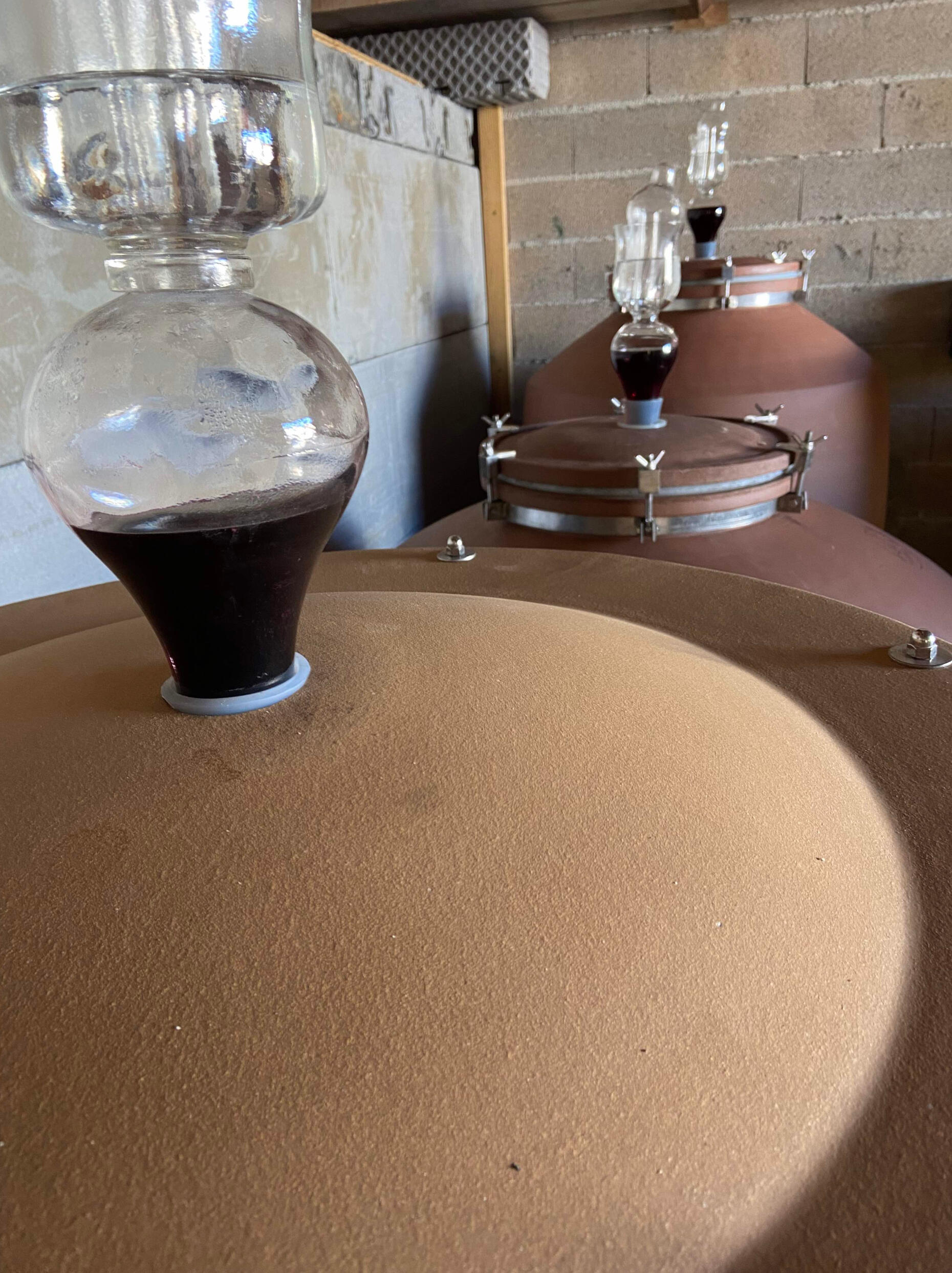 Entracte : Mettant en lumière le Grenache Noir (90%) et un soupçon de Syrah (10%), cette cuvée présente une robe rubis lumineuse et des arômes de framboise et d’épices. Élevé en jarre et amphore, elle marie puissance et délicatesse .