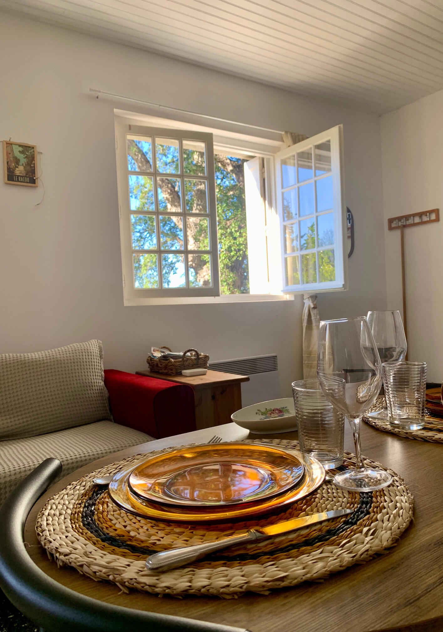 Il dispose d'une terrasse avec accès direct sur notre jardin arboré, d'une pièce salon-cuisine, et d'une chambre avec SDB-toilettes attenants. Chiens bien élevés et sociables acceptés.